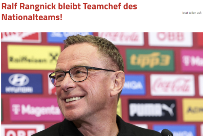 오스트리아축구협회는 2일(한국시간) 공식 채널을 통해 랑닉 감독이 2024 유럽축구연맹(UEFA) 유럽축구선수권대회(유로 2024)가 끝난 이후에도 오스트리아 대표팀을 이끌 예정이라고 밝혔다.